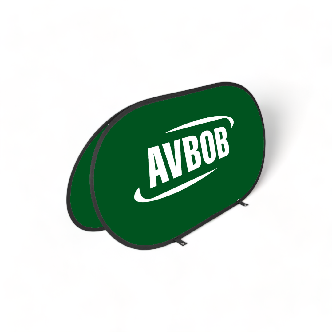 Pop-up 2m x 1m, Digitally printed onto Mini-Matt, complete with fibreglass hardware and Carry Bag